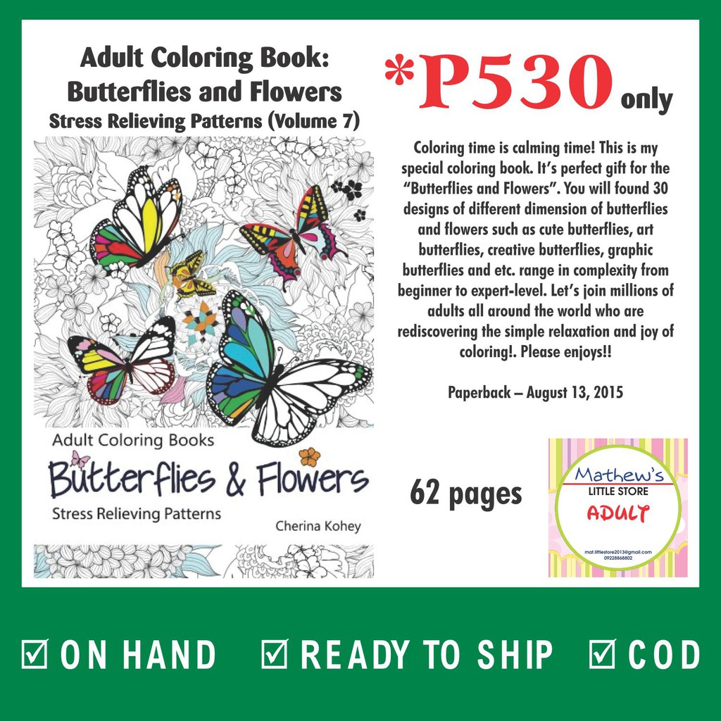 Adult Coloring Book Butterflies And Flowers Stress Relieving