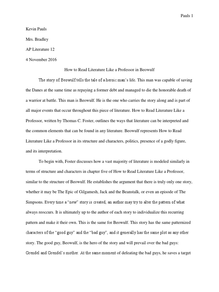 How To Read Literature Like A Professor In Beowulf Beowulf Old