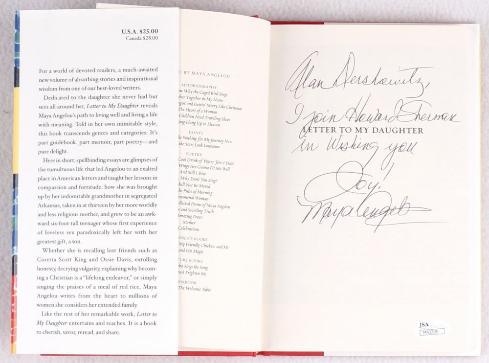 Maya Angelou Signed Letter To My Daughter Hardcover Book With