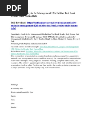 Quantitative Analysis For Management 12th Edition Test Bank Render Stair Hanna Hale