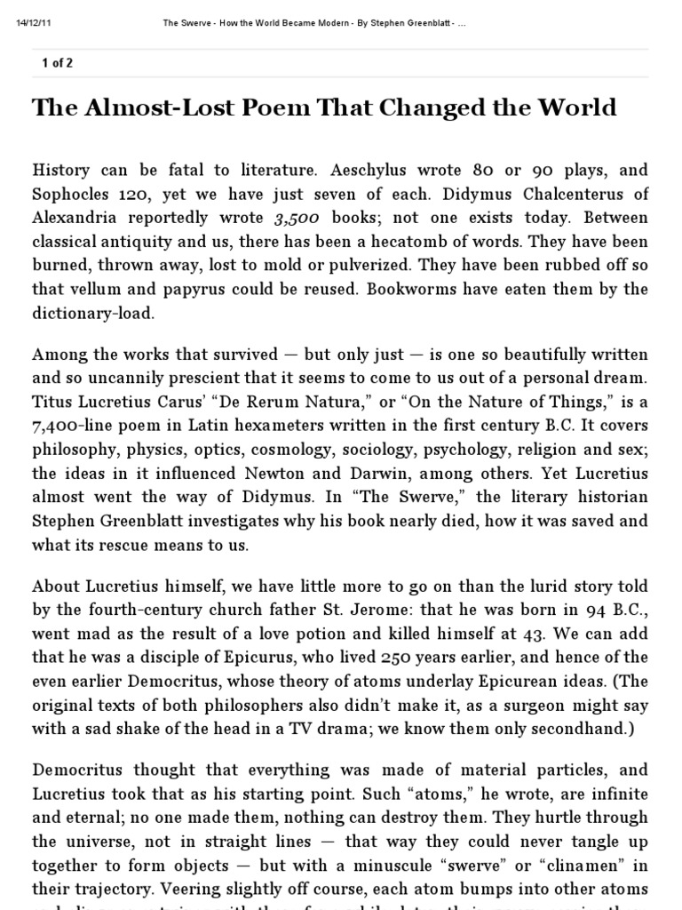 The Swerve How The World Became Modern By Stephen Greenblatt